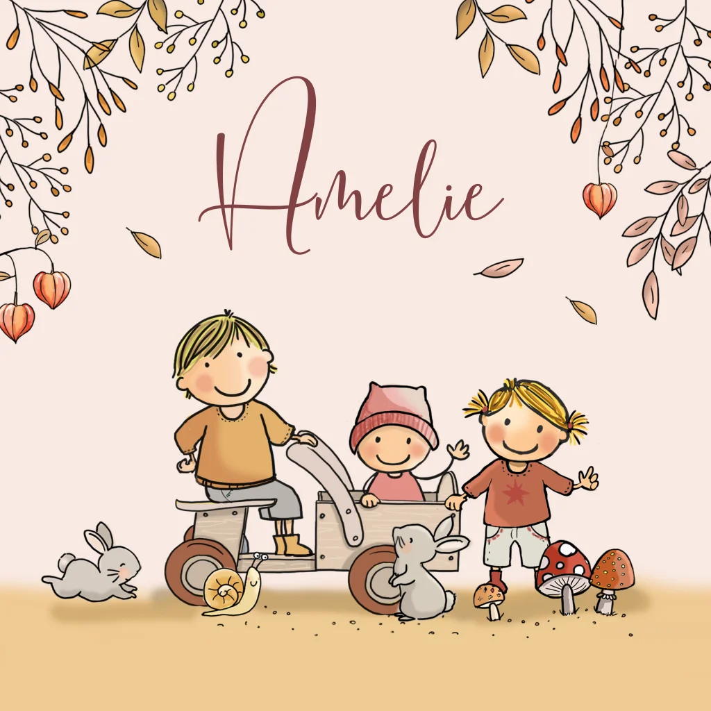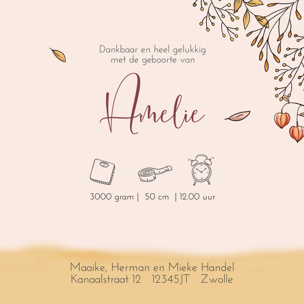 Geboortekaartje 3e kindje meisje in herfst sfeer