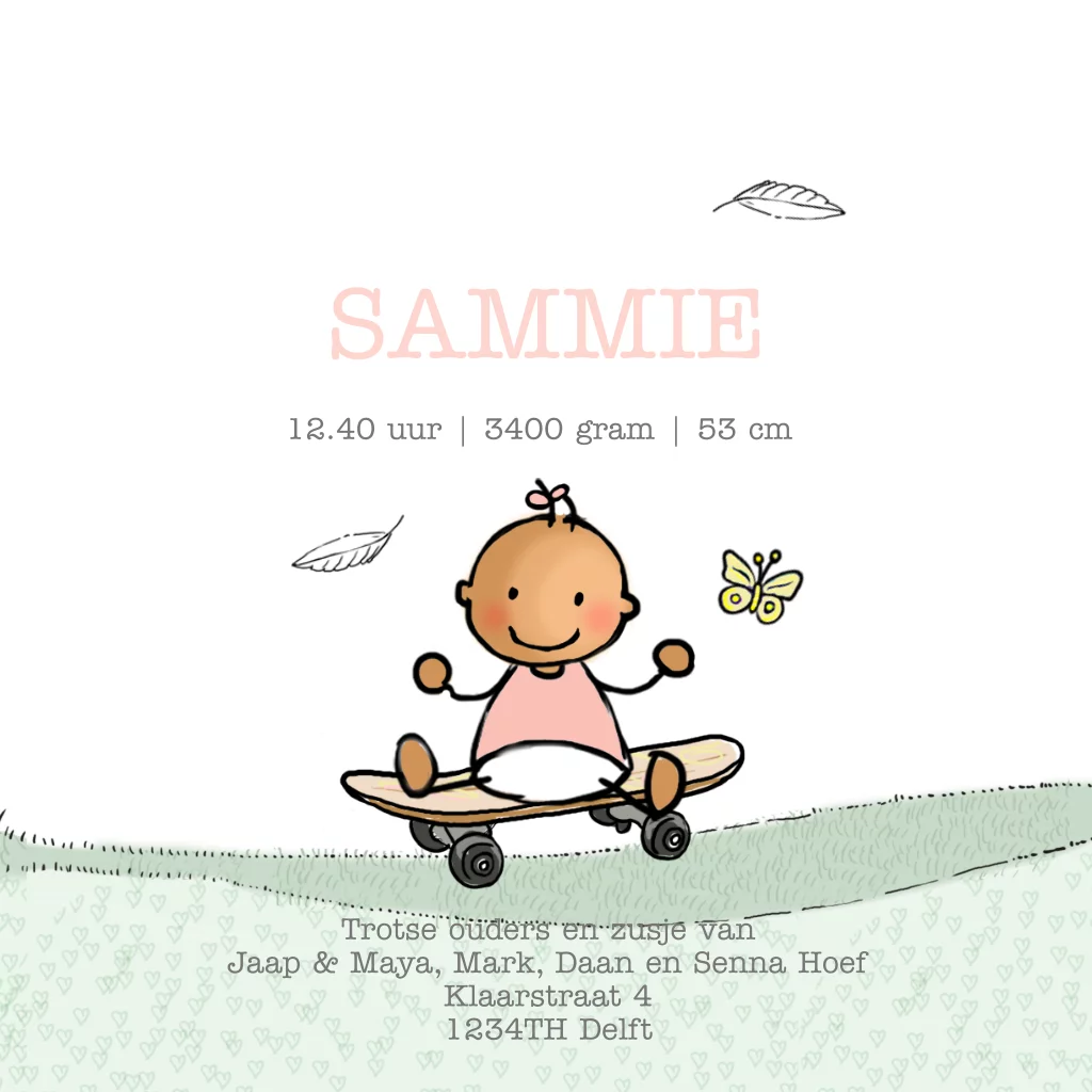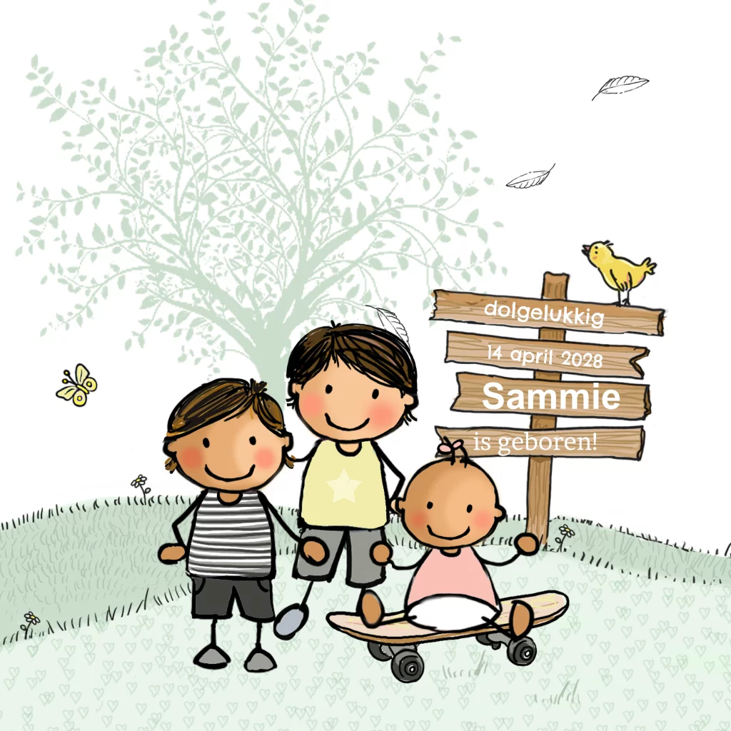 Geboortekaartje meisje derde kindje lente met 2 broers