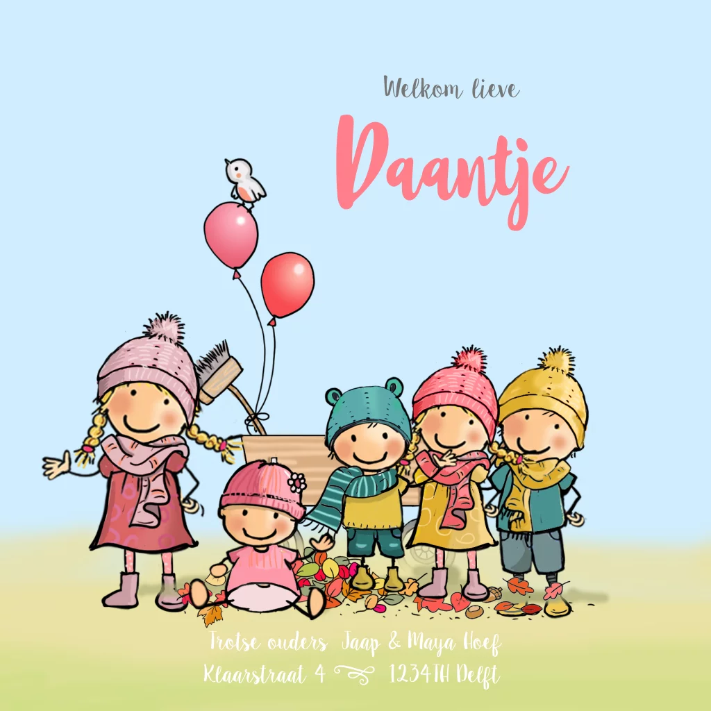 Herfst geboortekaartje babymeisje 5e kindje in kar