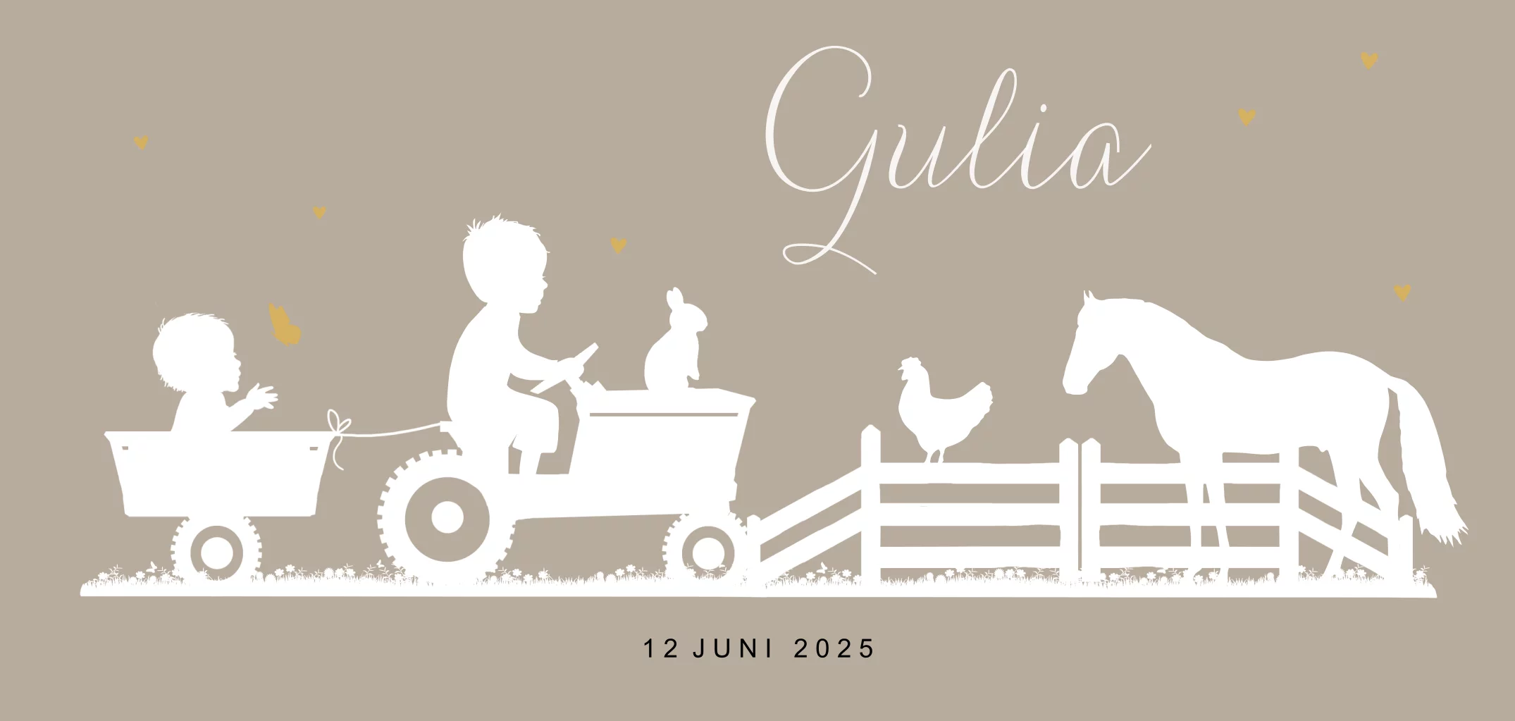 Geboortekaartje meisje 2e kindje met tractor en baby hekje