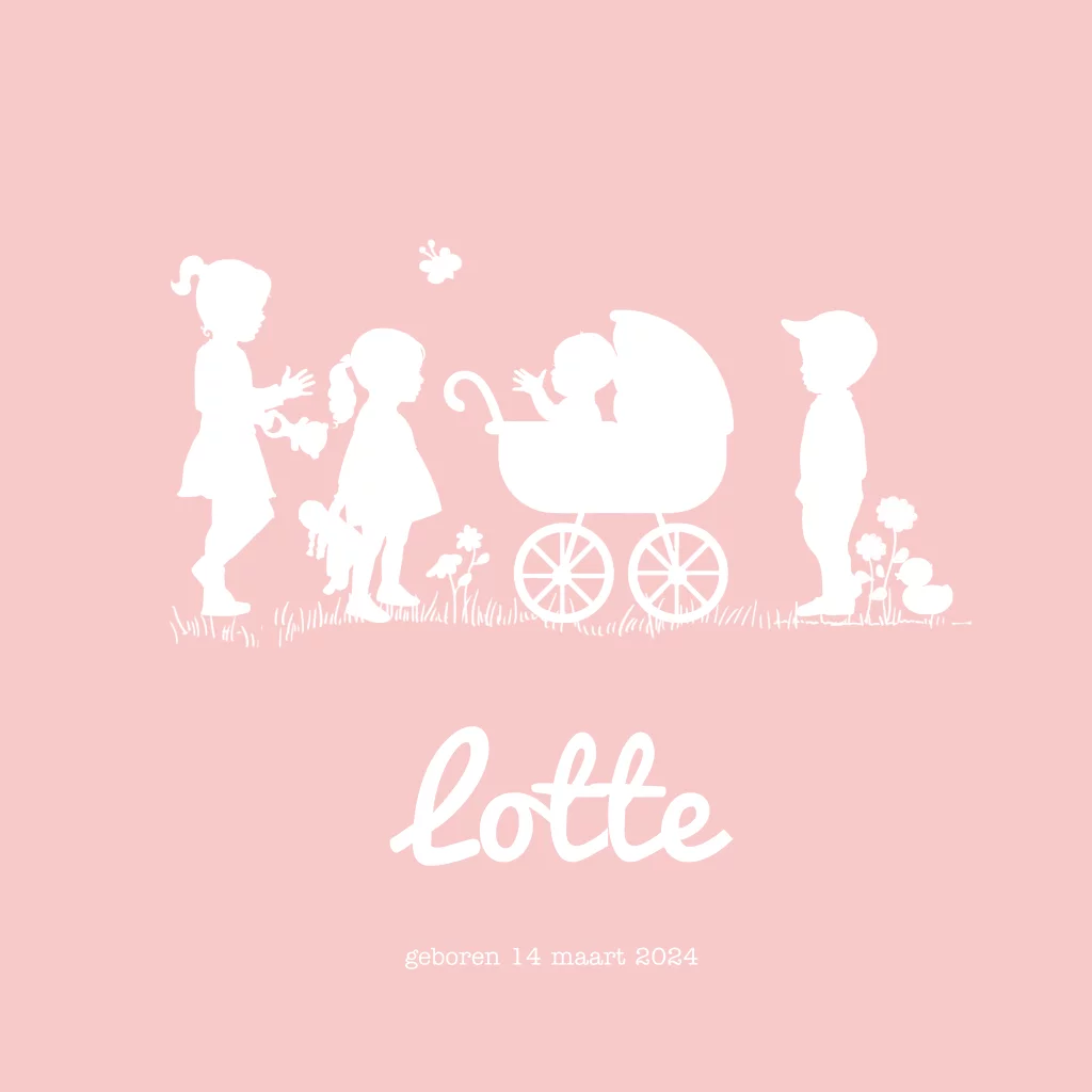 Profiel geboortekaartje baby in kinderwagen voor vierde kindje