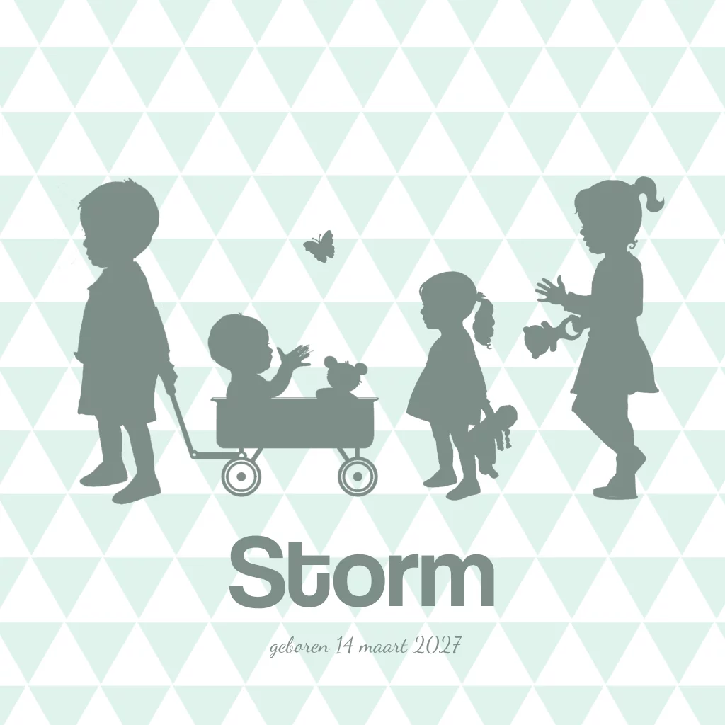 4e kindje geboortekaartje broer en zussen met broertje in kar