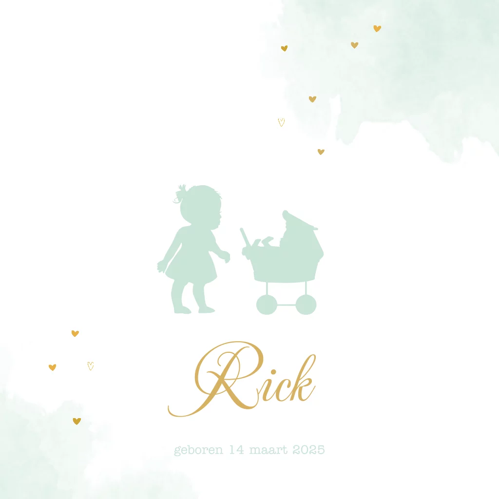 Lief geboortekaartje jongen 2e kindje jongen silhouette kinderwagen met grote zus. (21119)