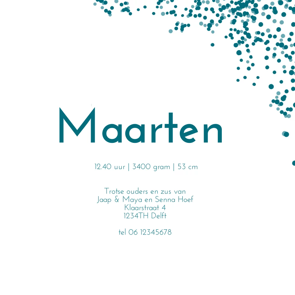 4e kind geboortekaartje jongen met grote broers met bellenblaas petrol kleur. (6254)