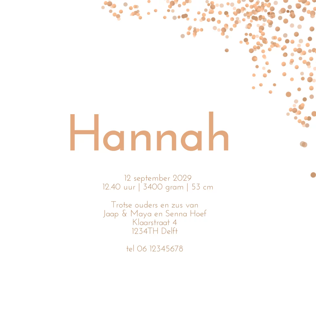 4e kindje geboortekaartje vierde kindje koper kleur voor een meisje met grote broers en zussen. (6254)