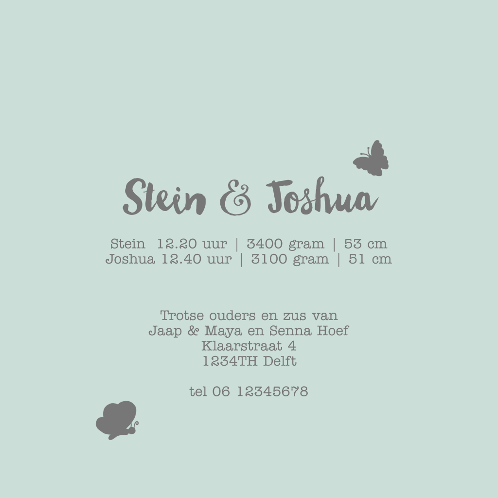 Profiel geboorte kaartje tweeling broertjes