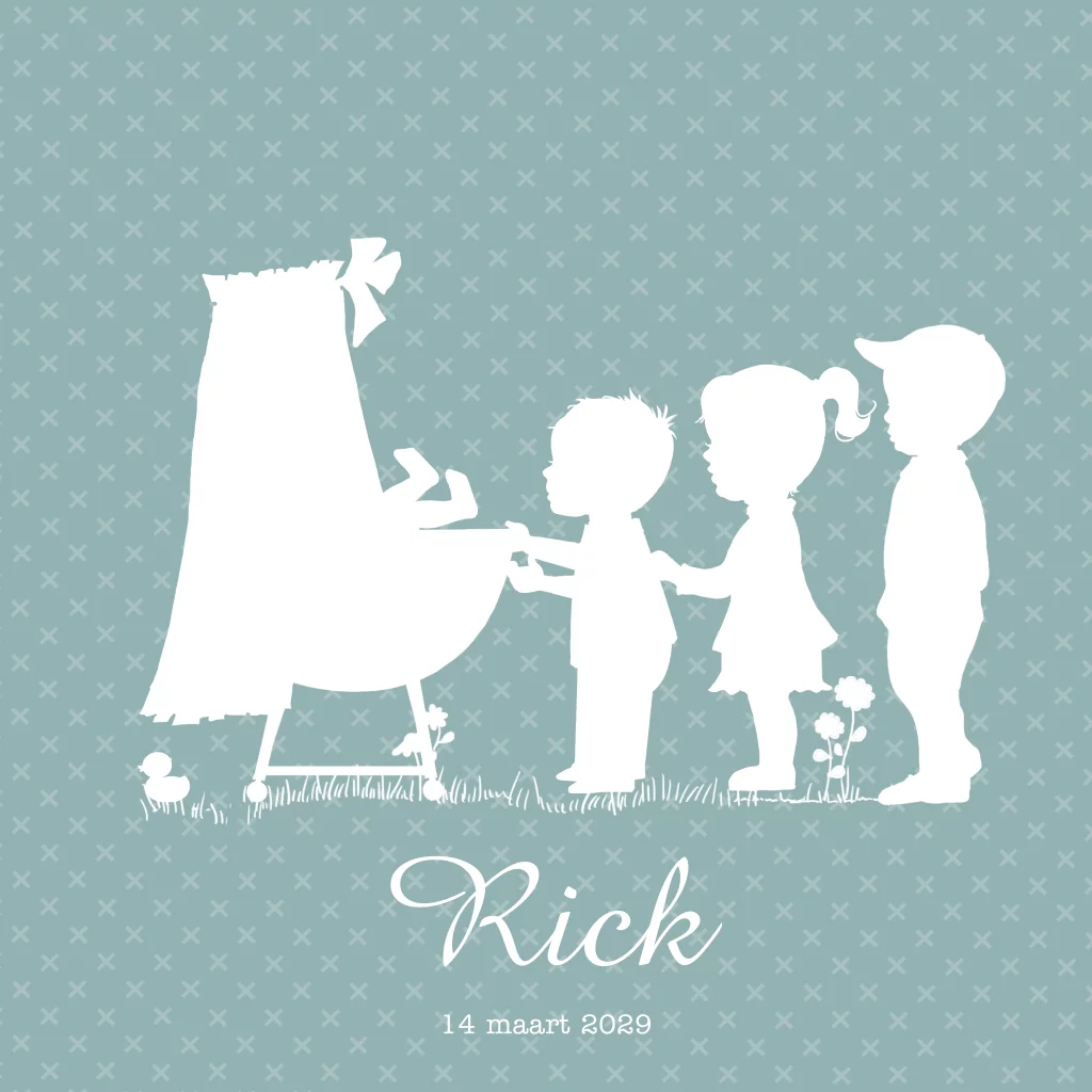 Profiel geboortekaartje jongens baby in wiegje voor een 4e broertje kindje. (6248)