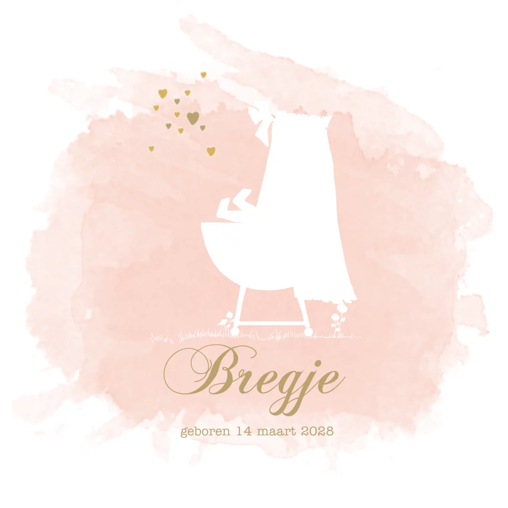 Profiel geboortekaartje baby meisje in een wieg. (7979)