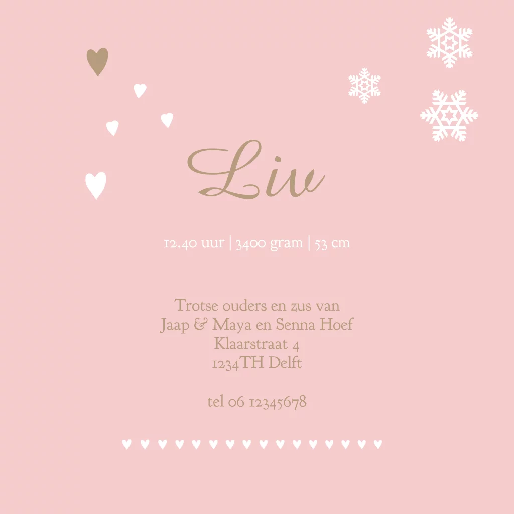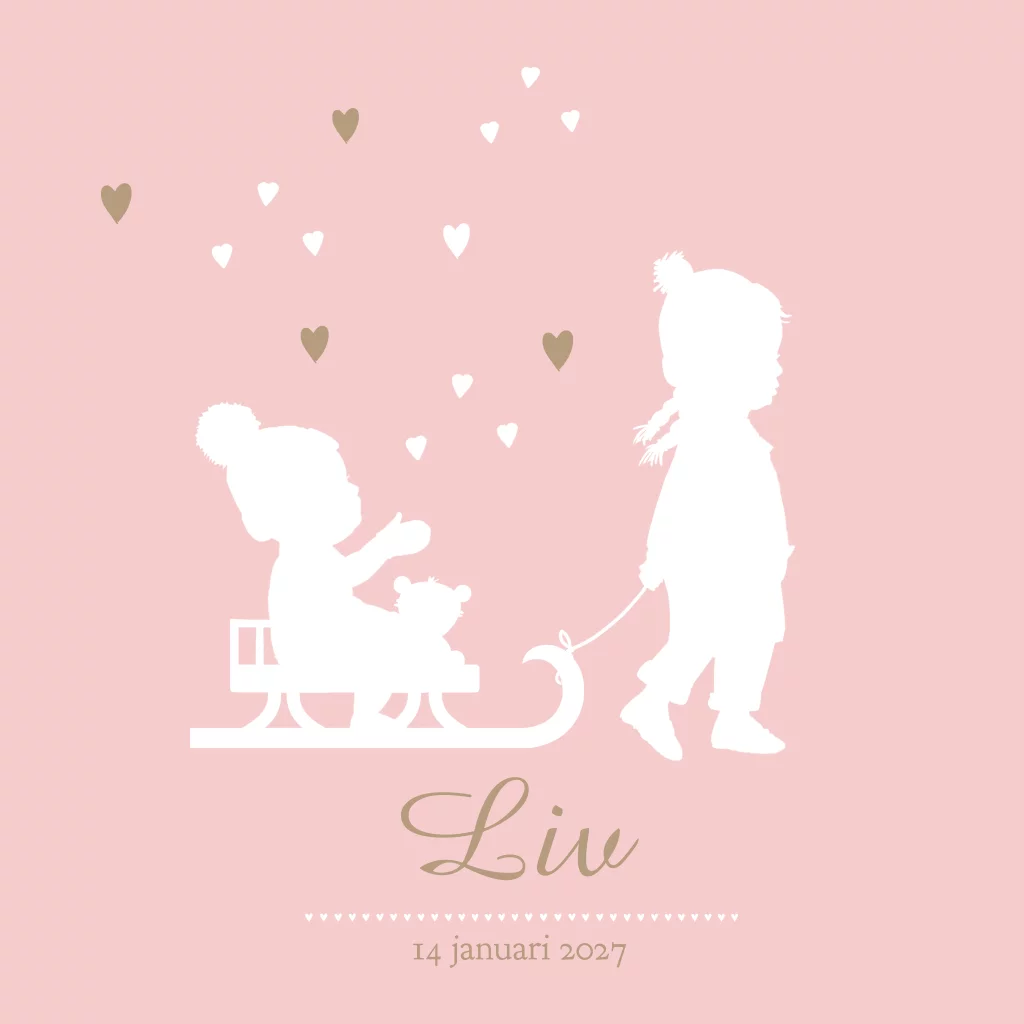 Winters thema geboortekaartje voor een 2e kindje meisje met een grote zus voor de slee in de winter. periode (5652)