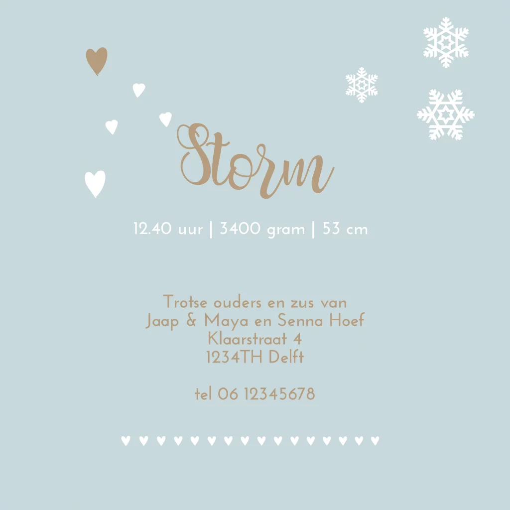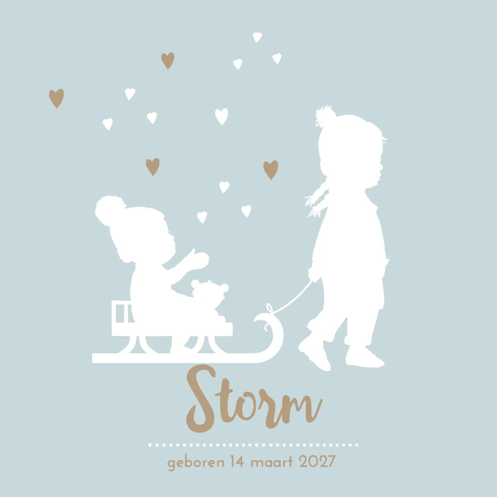 Slee geboortekaartje 2e kindje winter seizoen