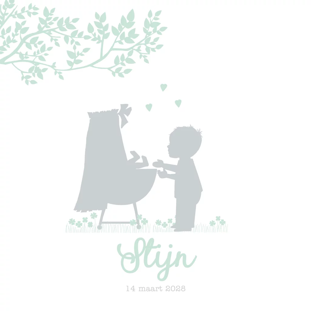 Geboortekaartje 2e kindje jongen wiegje met broer