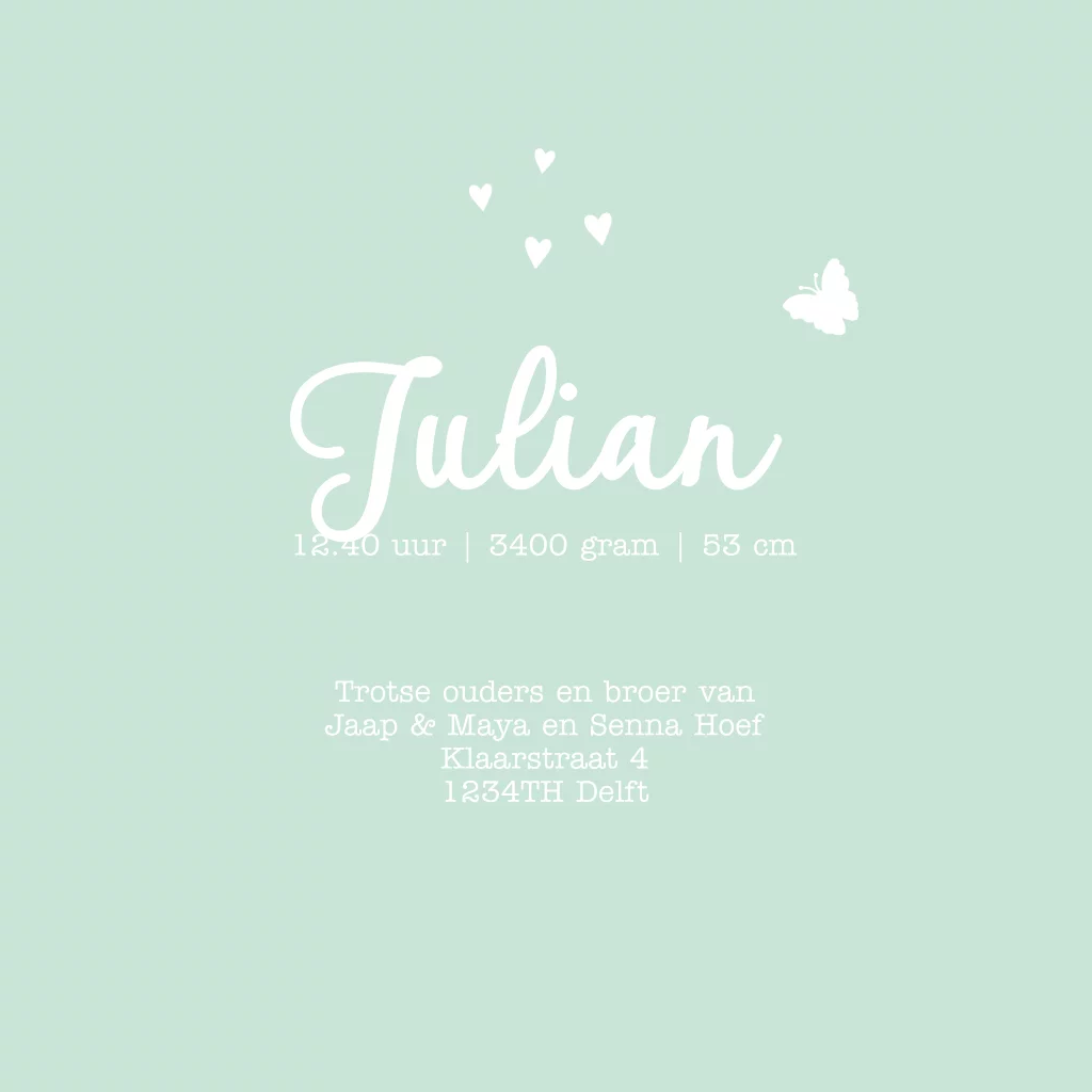Geboortekaartje 3e kindje jongen wiegje met zusjes