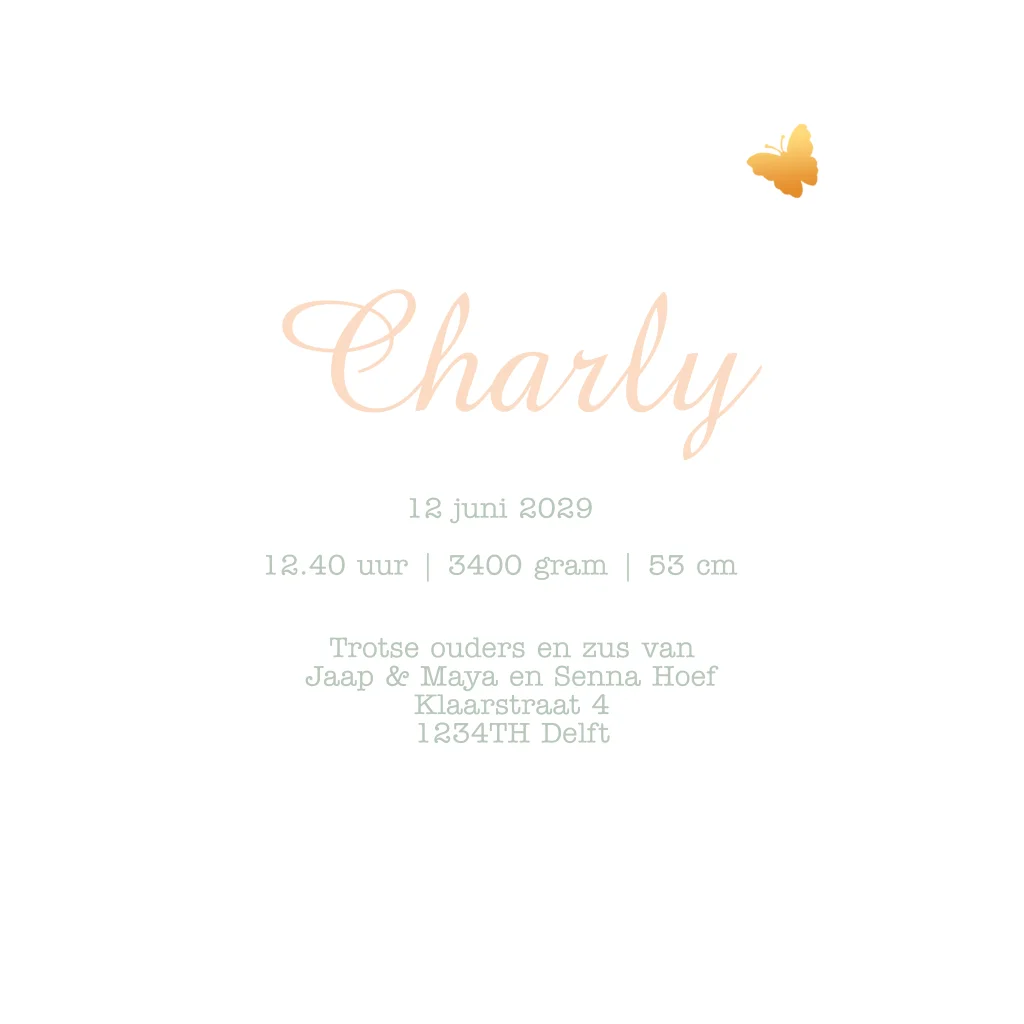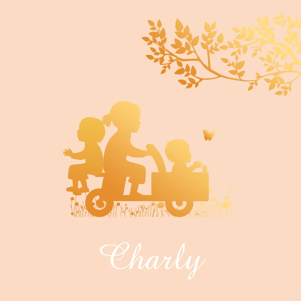 Geboortekaartje bakfiets 3e kindje meisjes koperlook