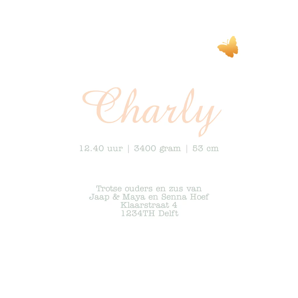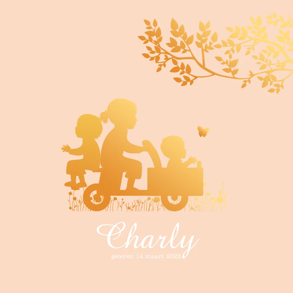 Profiel geboortekaartje bakfiets 3e kindje meisjes koperlook