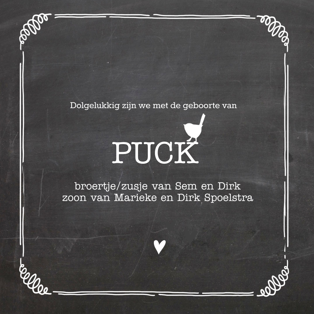 Profiel geboortekaart jongen op krijtbord vierde kindje