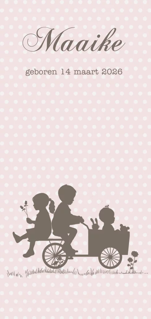 Meisjes geboortekaartje voor een derde kindje bakfiets