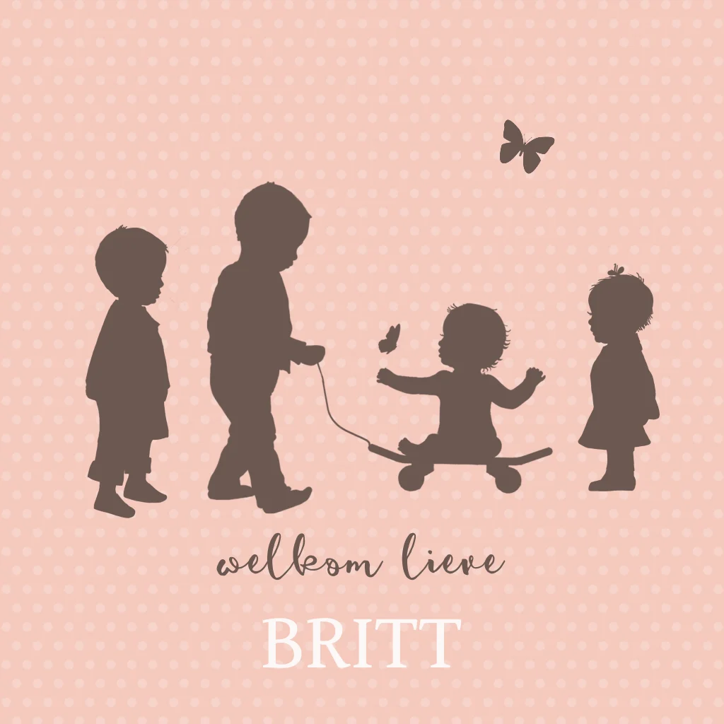 Getekende silhouette geboortekaartje 4e kindje met stoer meisje op skateboard. 4e kindje (7186)