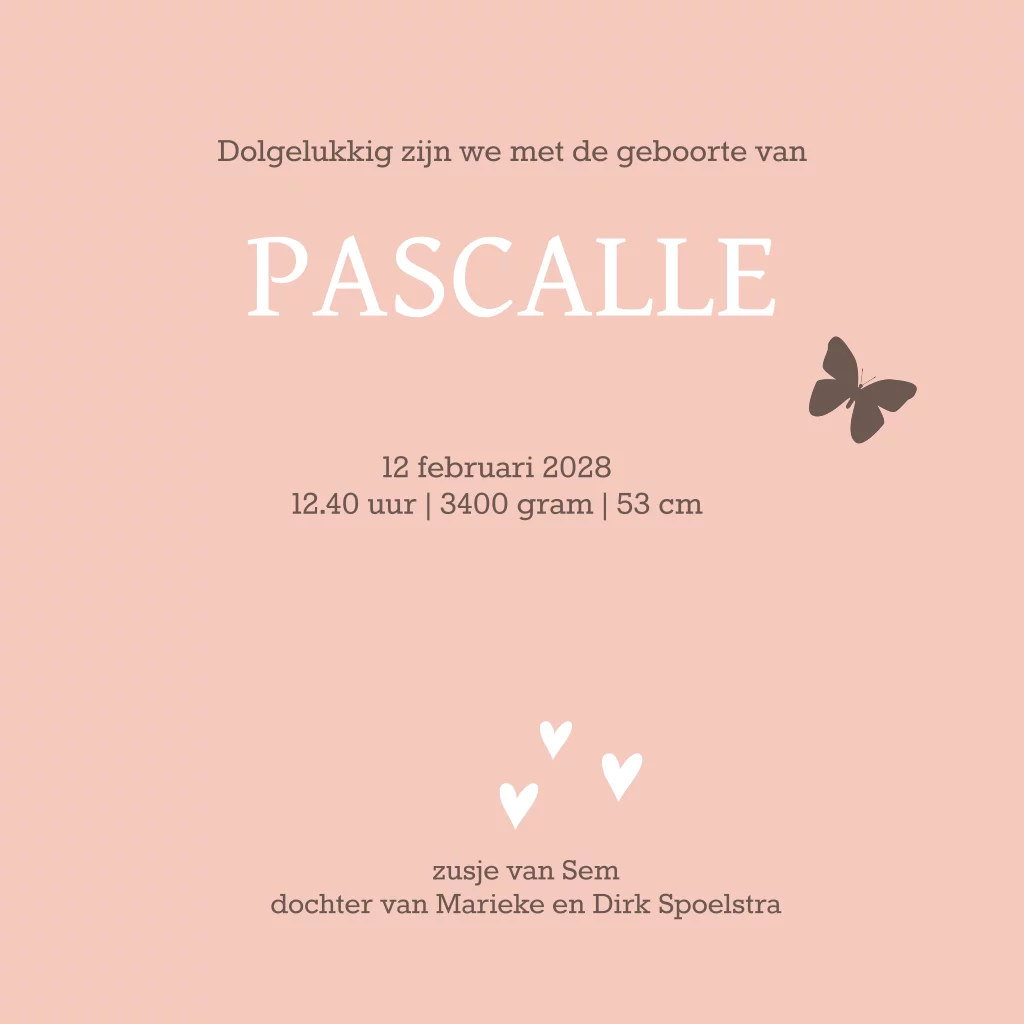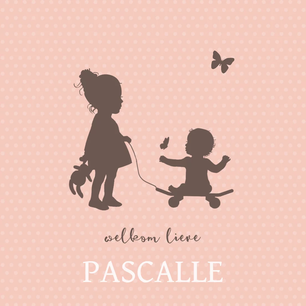 Leuk getekende Hollands geboortekaartje met stoer meisje op skateboard voor een 2e kindje met een grote zus. (7186)