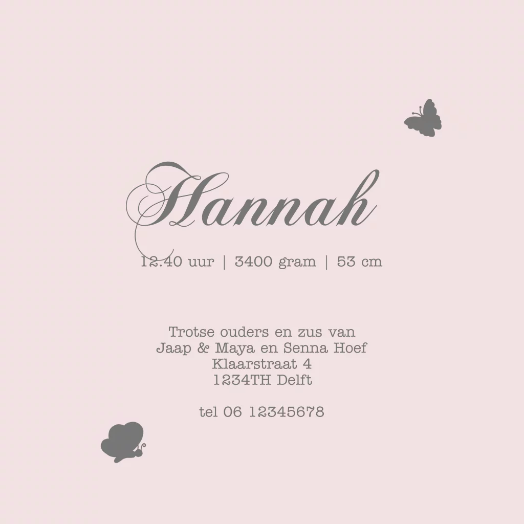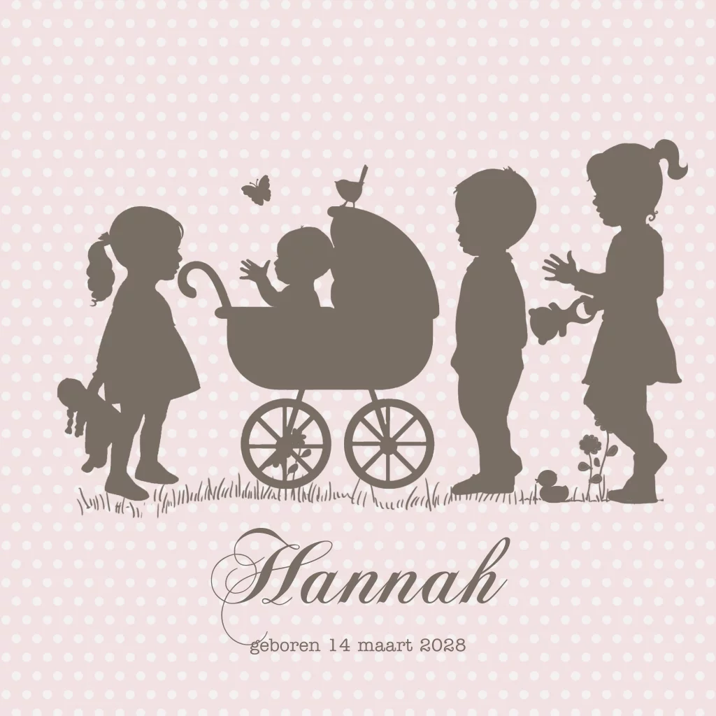 Geboortekaartje meisjes 4e kindje met grote zussen en grote broer. (2667) Geboortekaartje Hannah