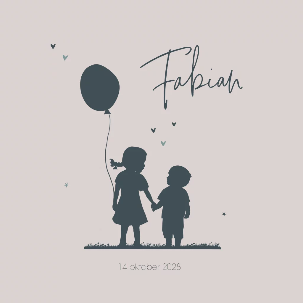 Silhouet geboortekaartje jongen met zusje en ballon tweede kindje