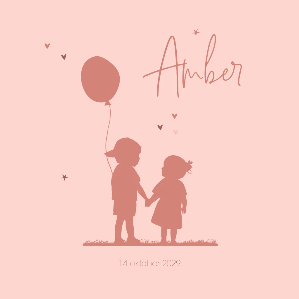Geboortekaartje 2e kindje meisje met grote broer en ballon in zijn hand. Voor een 2e kindje. (21409)