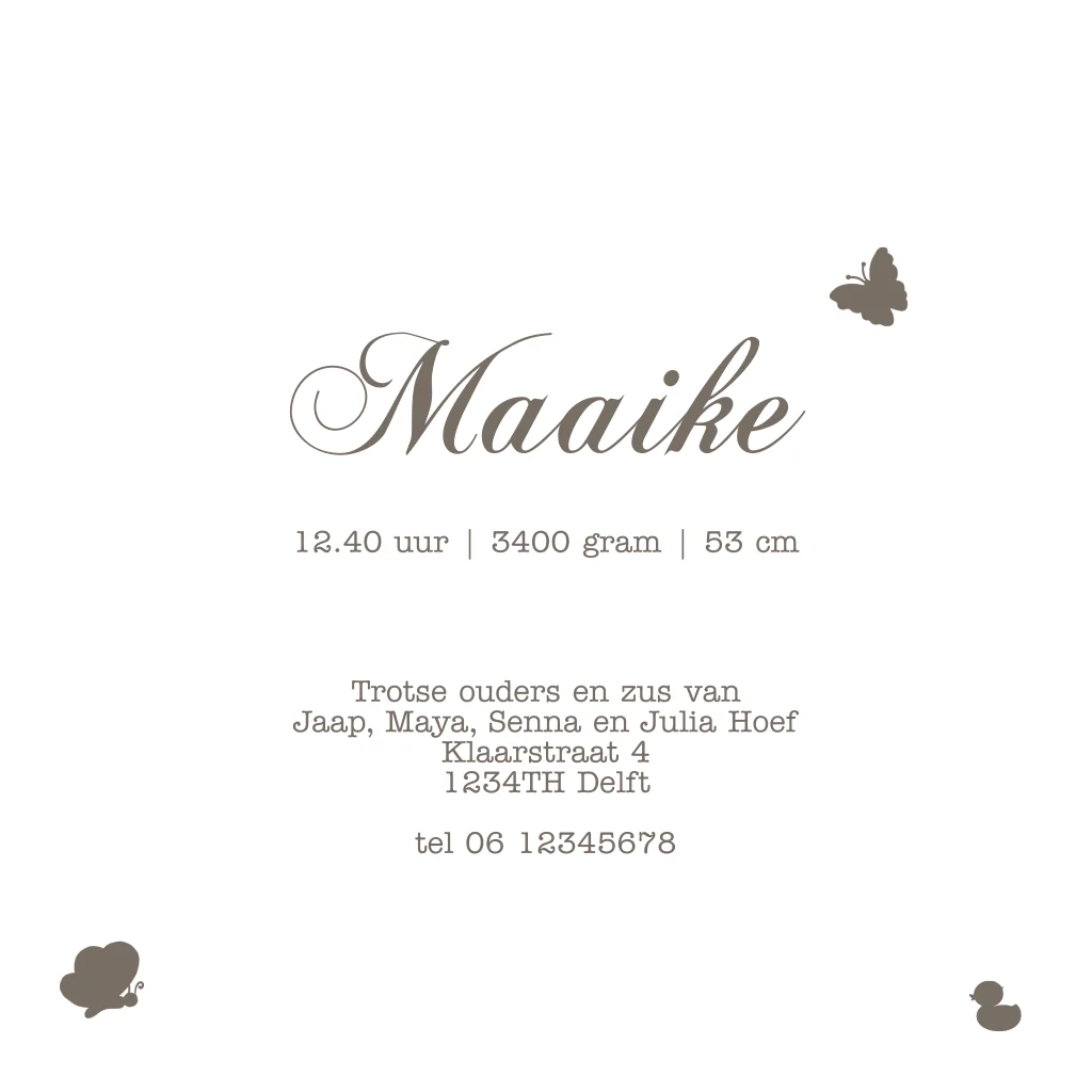Silhouet geboortekaartje meisje 5e kindje zusje