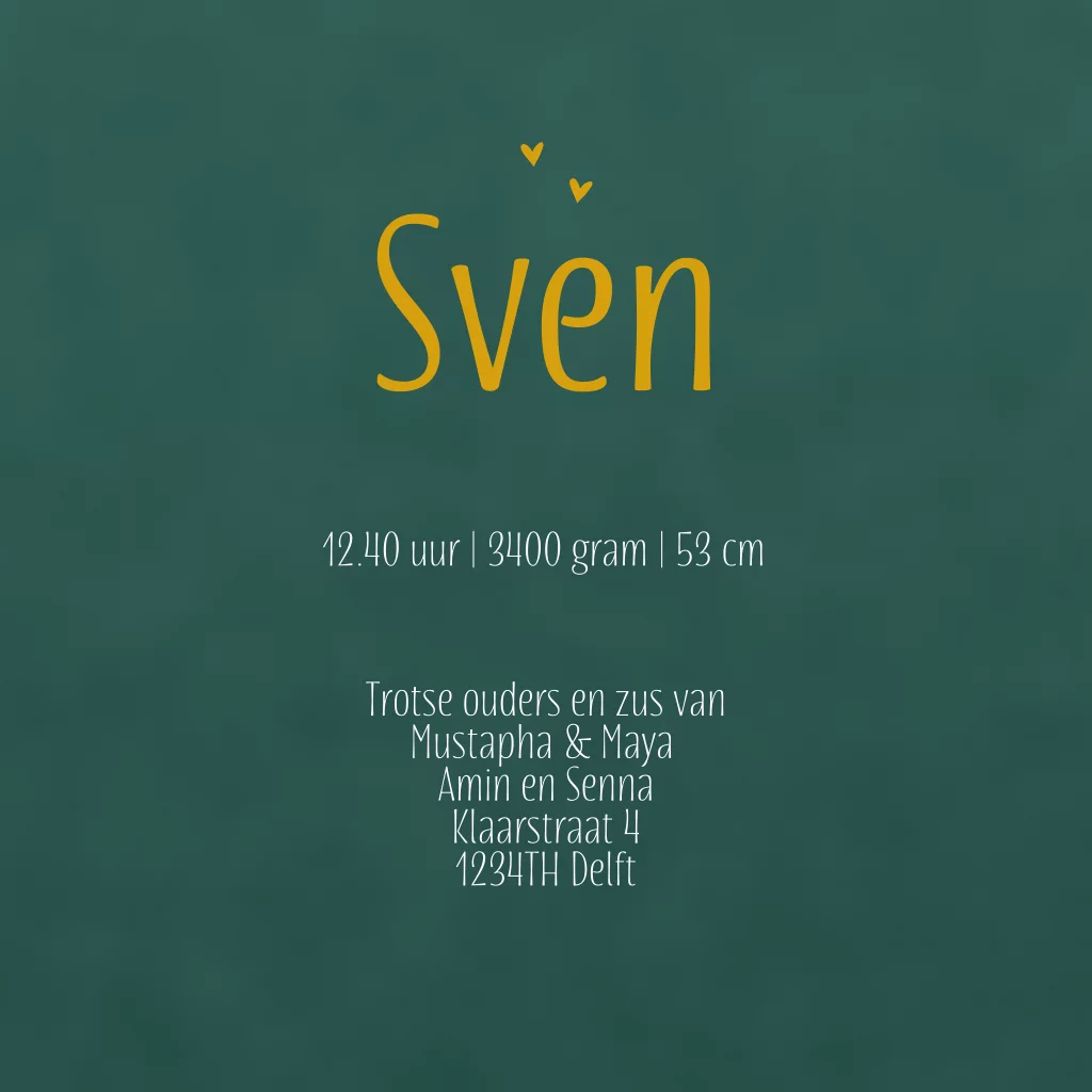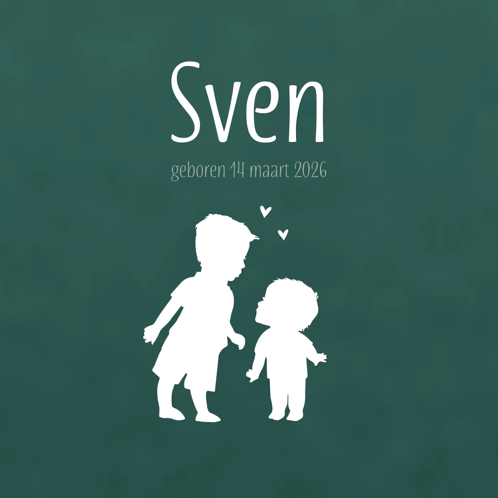 Silhouette geboortekaartje 2de kindje broertjes velvet groen Sven