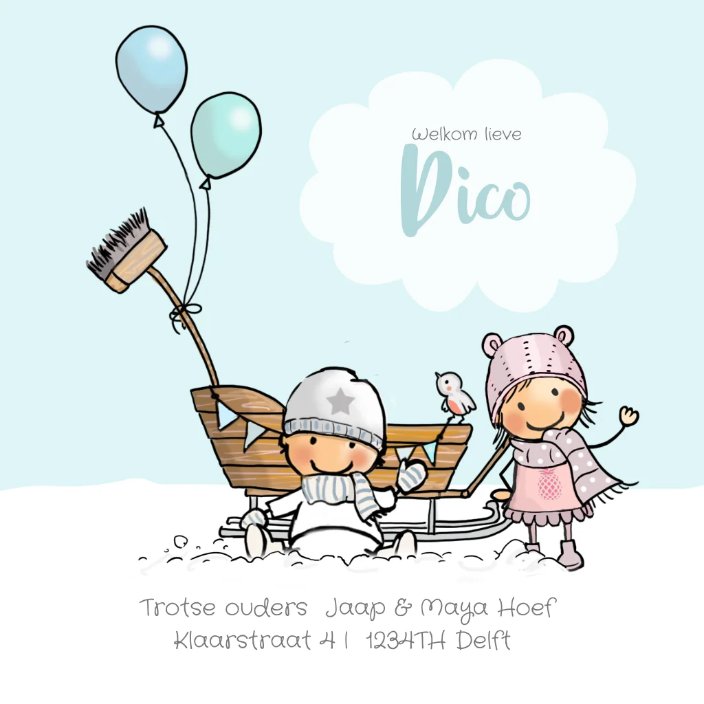 Winters geboortekaartje zusje en broertje 2e kindje