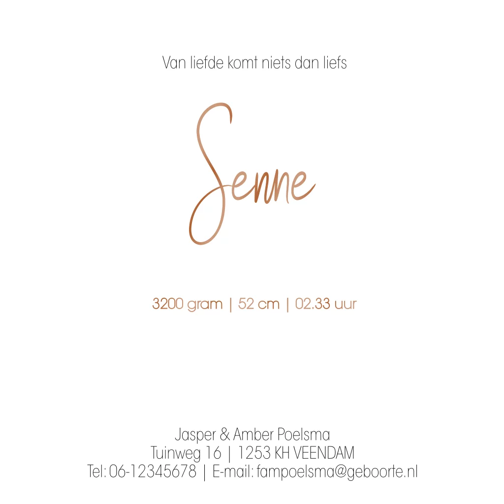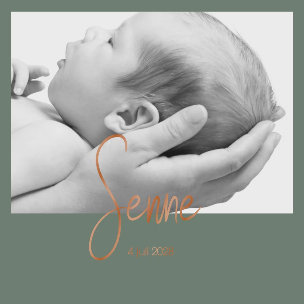 Foto geboortekaartje jongen clean ontwerp hoogglans koper lak
