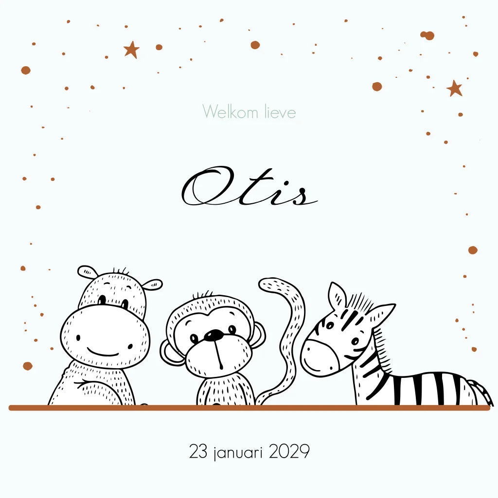 Geboortekaartje jongen met safaridieren en sterrenhemel unisex