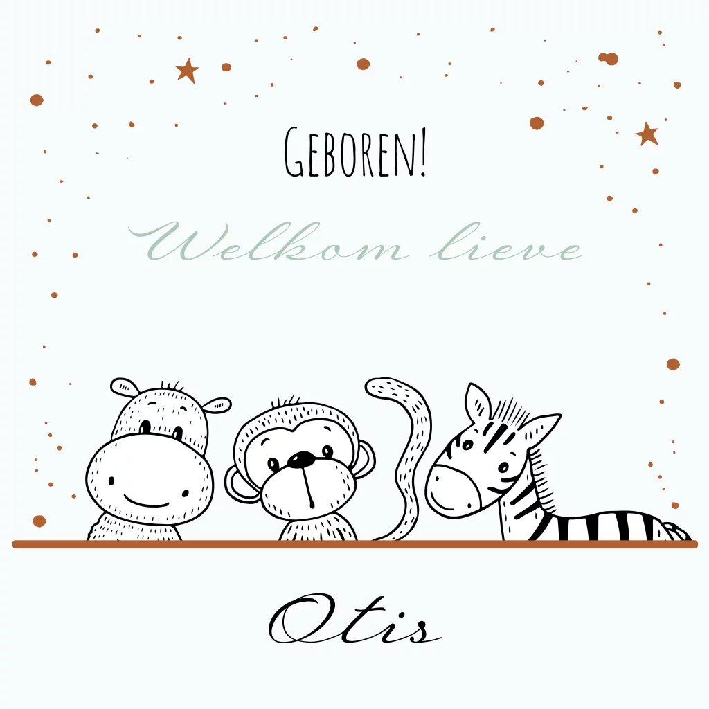 Geboortekaartje met safaridieren en sterrenhemel unisex