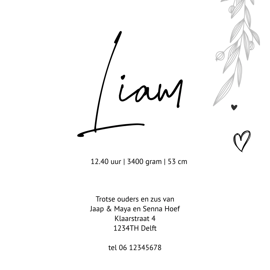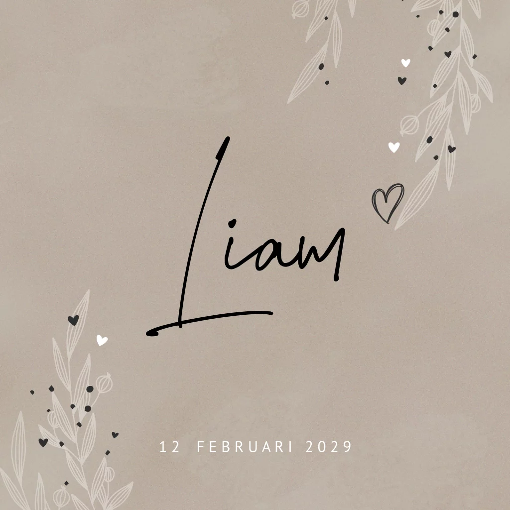 Geboortekaartje jongen natural / zandtint met takjes en hartje. (22649) Geboortekaartje Liam
