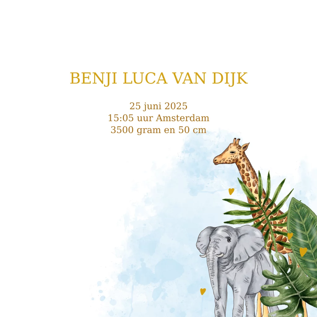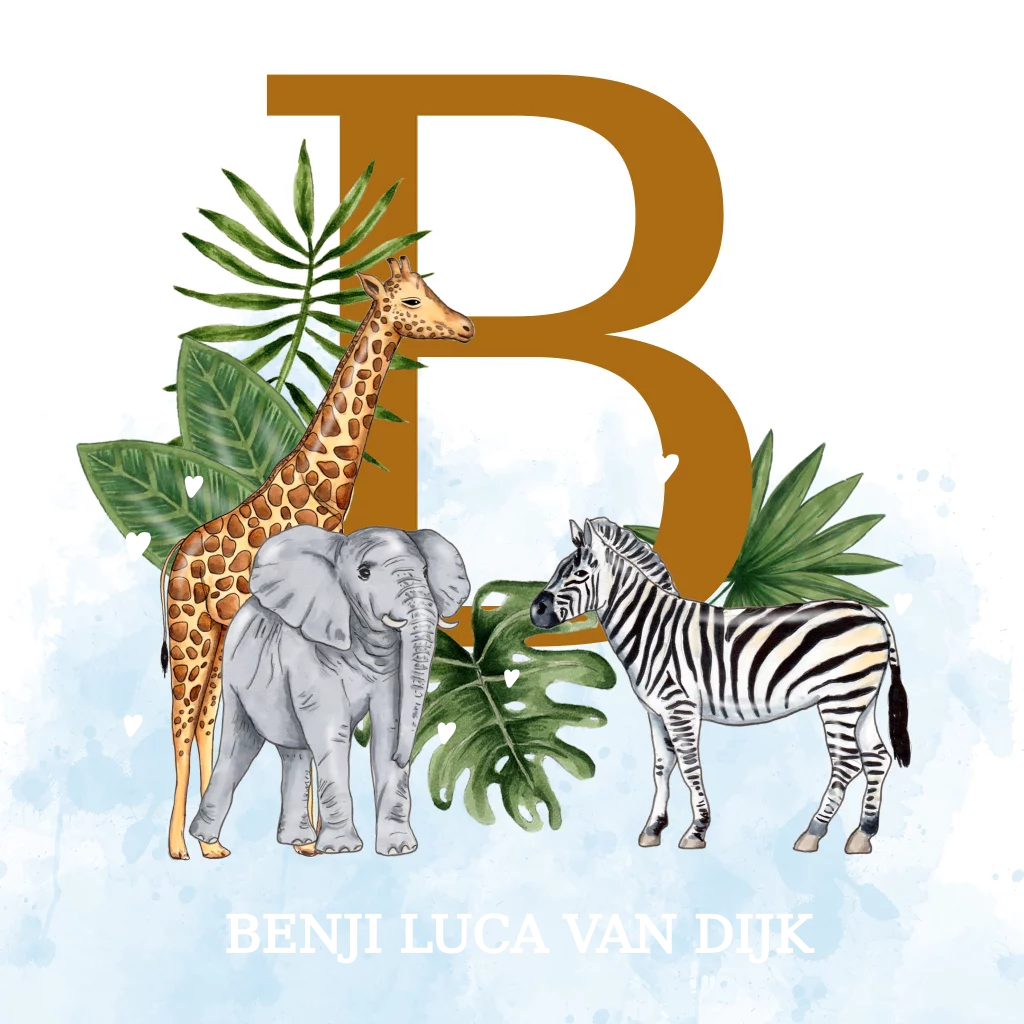 Geboortekaartje jungle dieren letter goudfolie