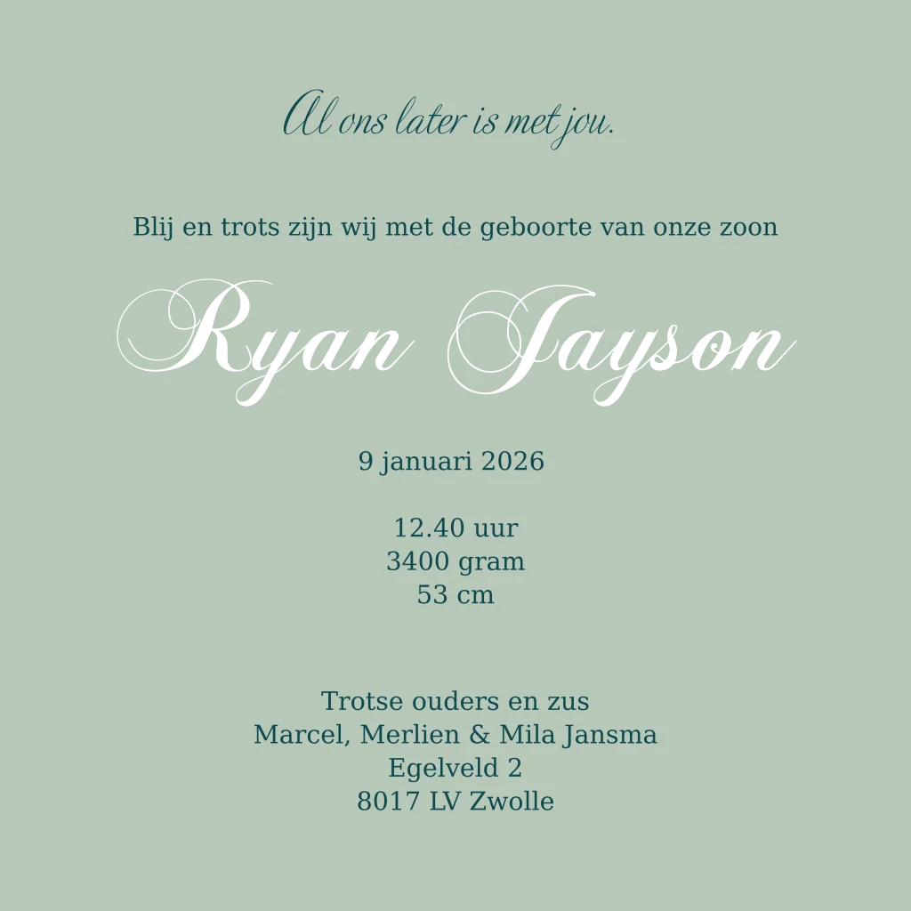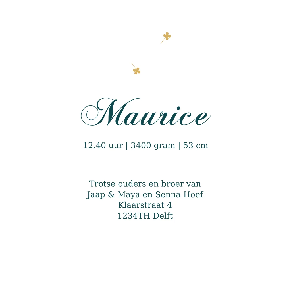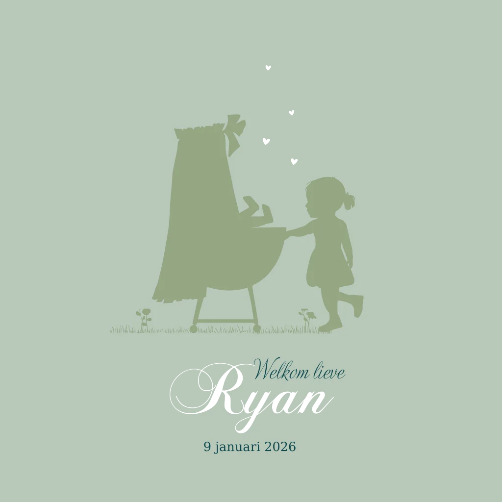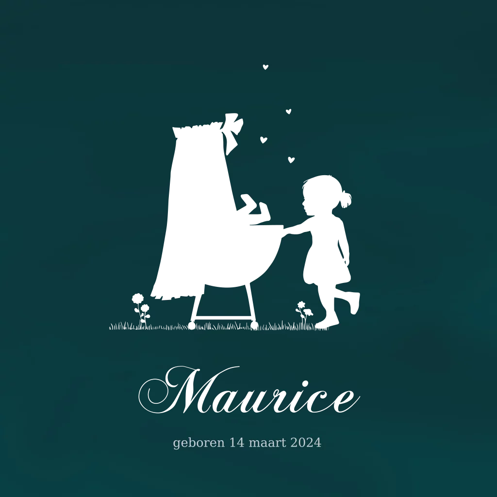 Foliedruk geboortekaartje wieg zusje baby jongen goudfolie