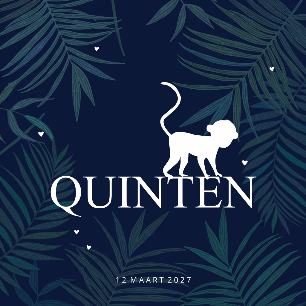 Jungle geboortekaartje jongen met klein aapje goudfolie