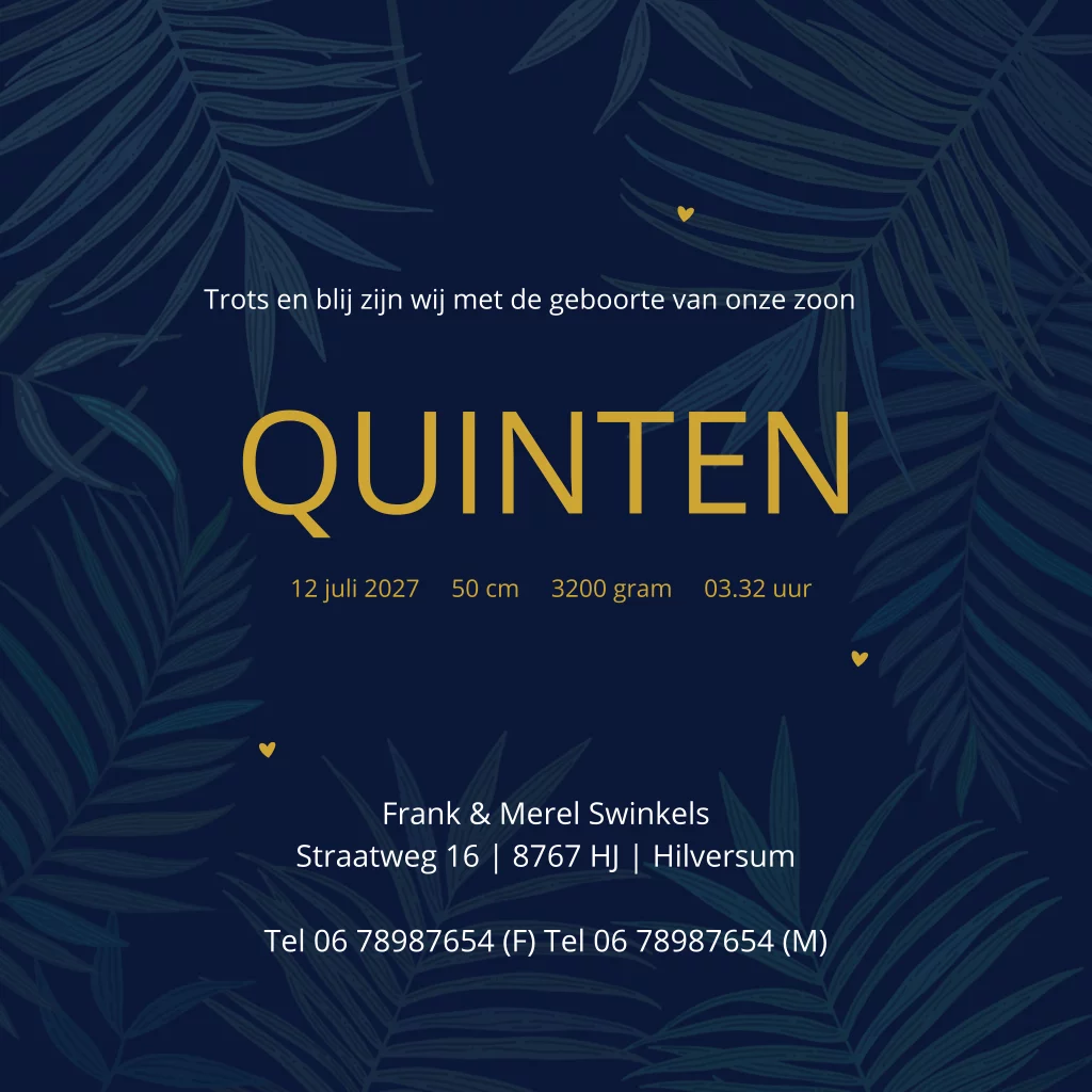 Bij dit kaartje kun je foliedruk aan alle zijdes gebruiken. Je kunt dit kaartje ook bestellen met alleen foliedruk op de voorkant waardoor de kosten per kaart lager zijn. Vragen hierover? Neem gerust contact met ons op.