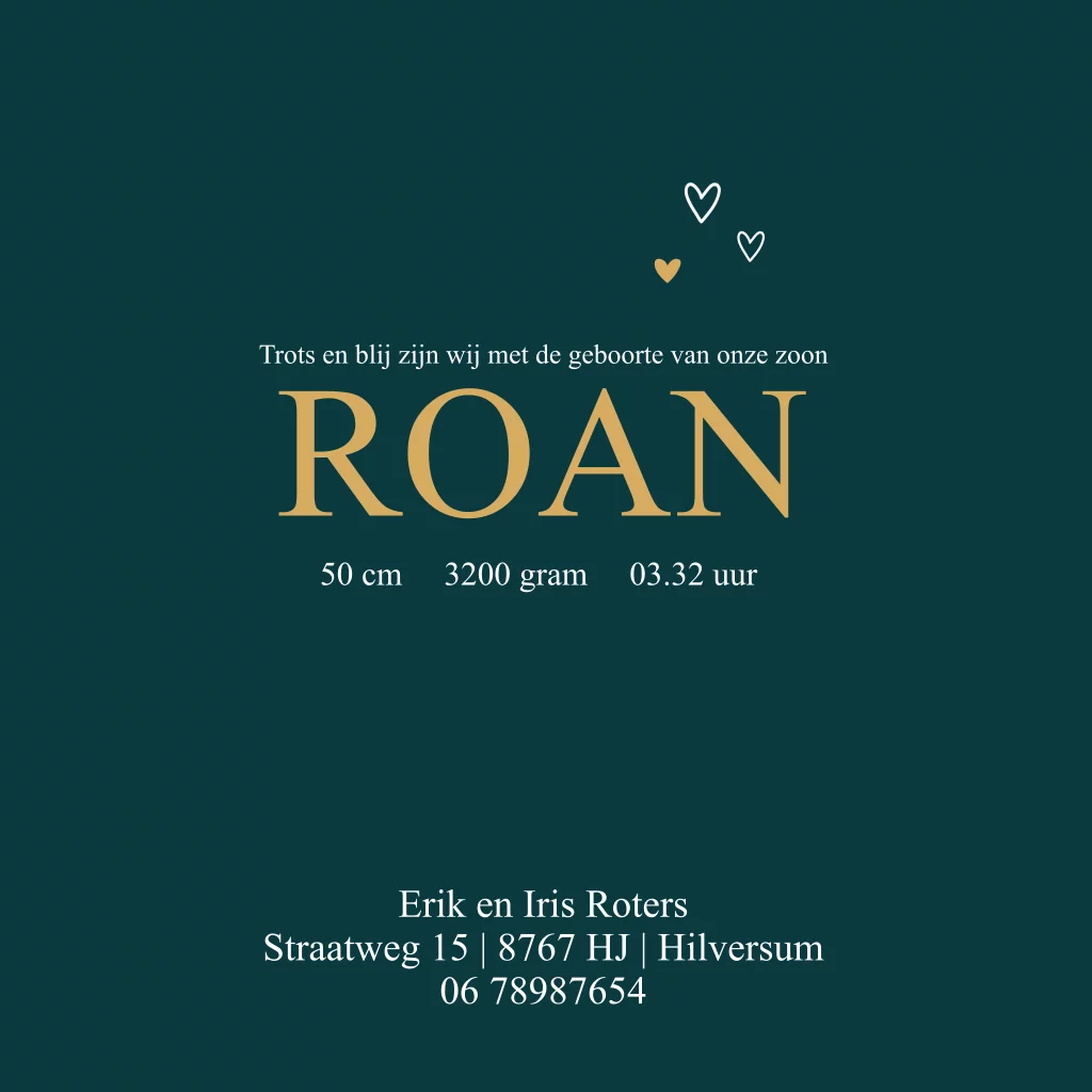 Bij dit kaartje kun je foliedruk aan alle zijdes gebruiken. Je kunt dit kaartje ook bestellen met alleen foliedruk op de voorkant waardoor de kosten per kaart lager zijn. Vragen hierover? Neem gerust contact met ons op.