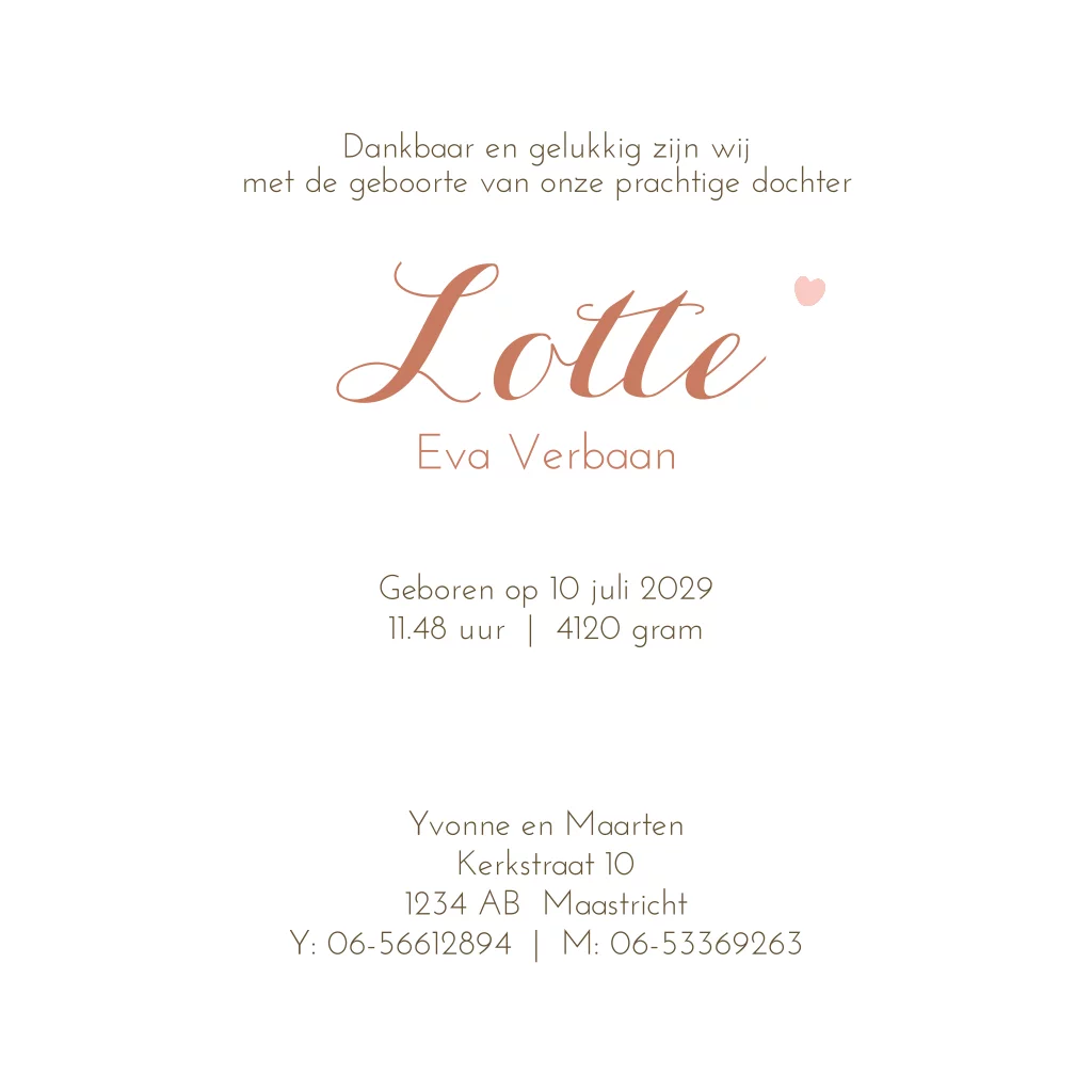Geboortekaartje gezichtje meisje met een pentekening in rose folie met roze waterverfvlek en hartjes. (22033)