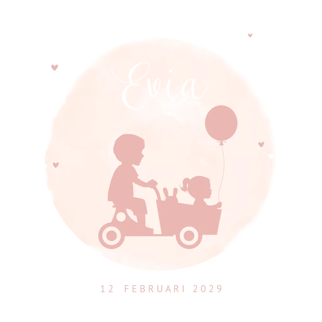 Geboortekaartje grote broer met zusje in houten bakfiets foliedruk. (22048)