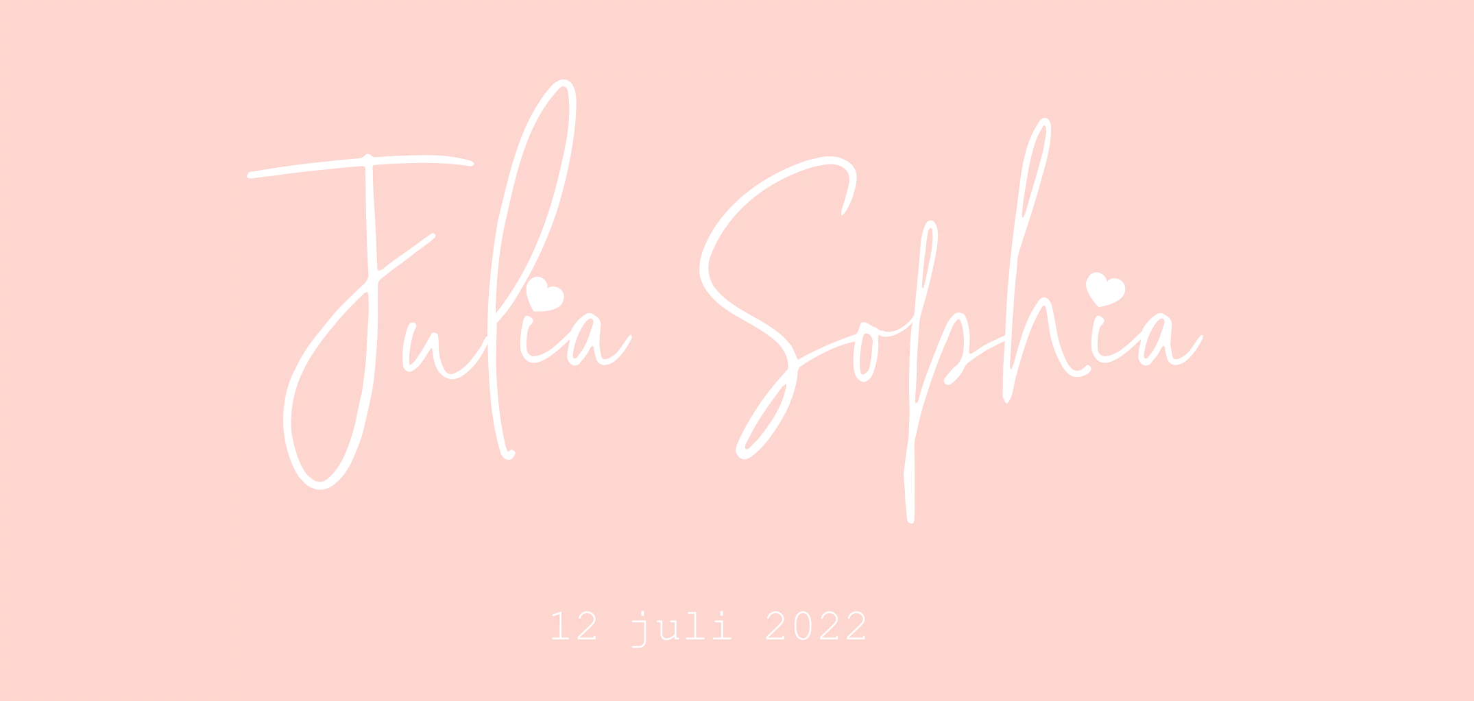 Geboortekaartje goudfolie meisje peach. Plaatsje de hartjes op de plek van i (indien van toepassing) (8351)