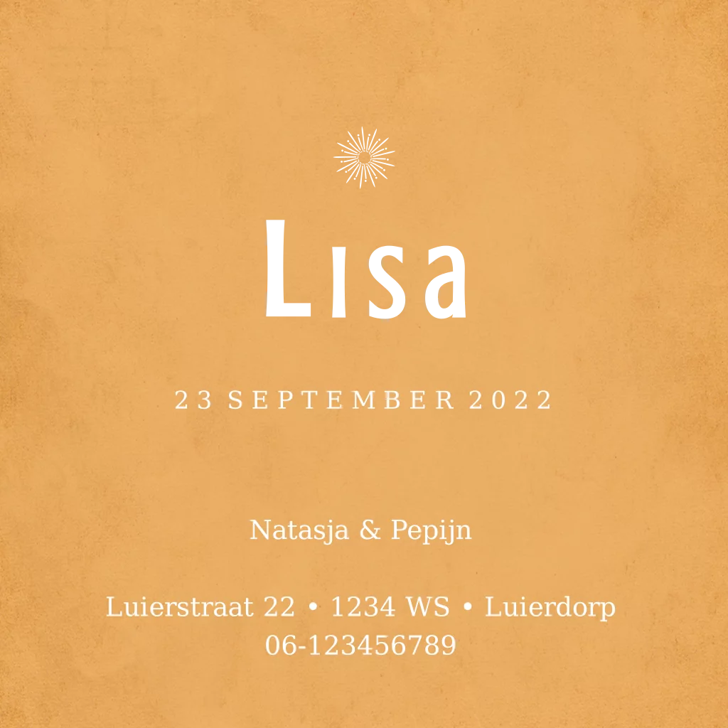 Geboortekaartje goudfolie zon meisje