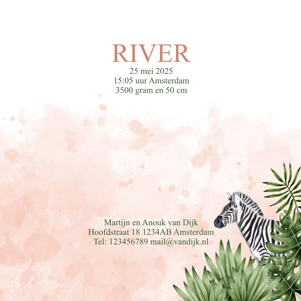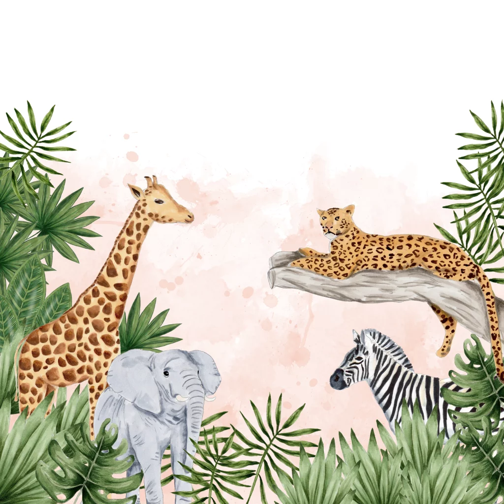 Geboortekaartje jungle dieren waterverf roze foliedruk