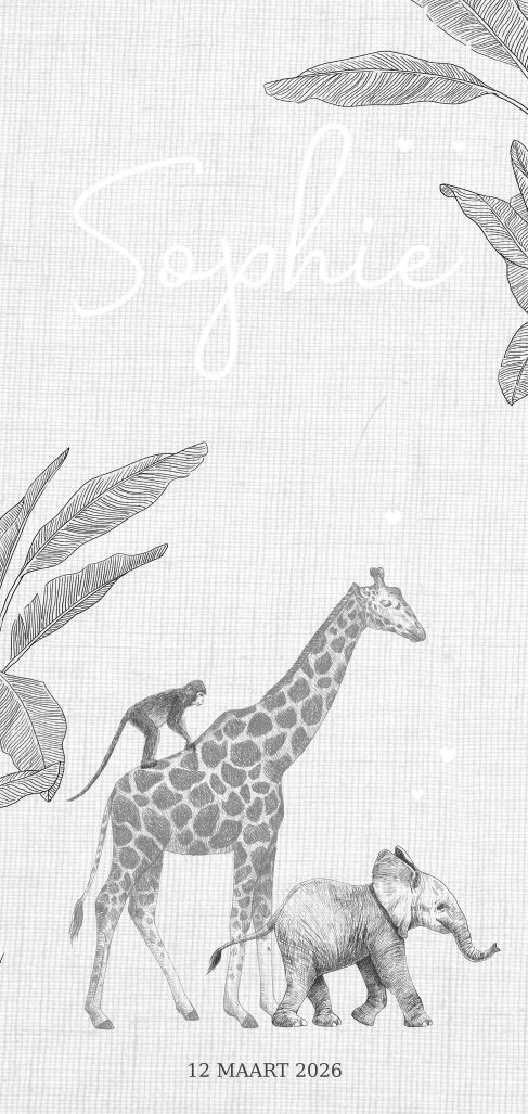 gouden foliedruk. De achtergrond heeft een natural witte jute-look en kan qua kleur worden aangepast. (22645) Geboortekaartje Sophie