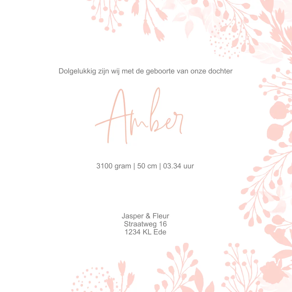 Geboortekaartje meisje bloemenkaart botanisch met goudfolie