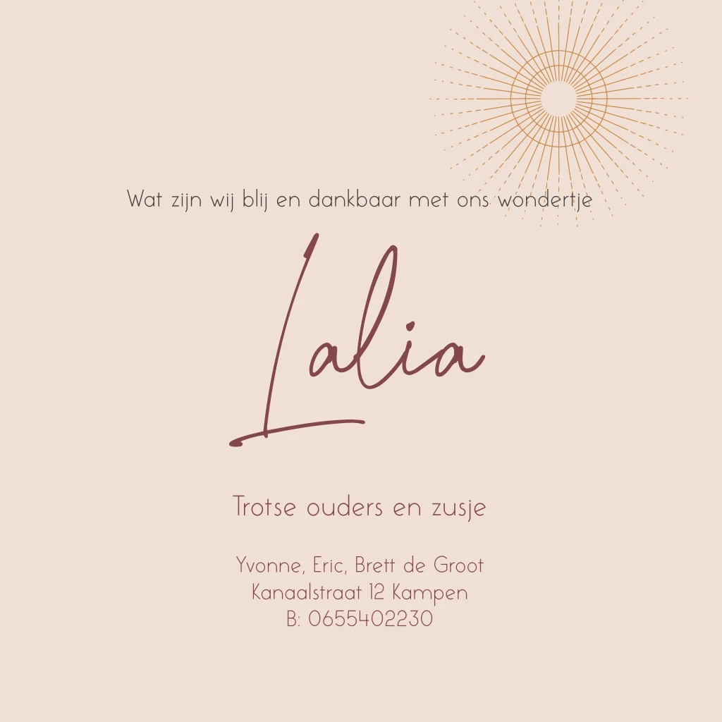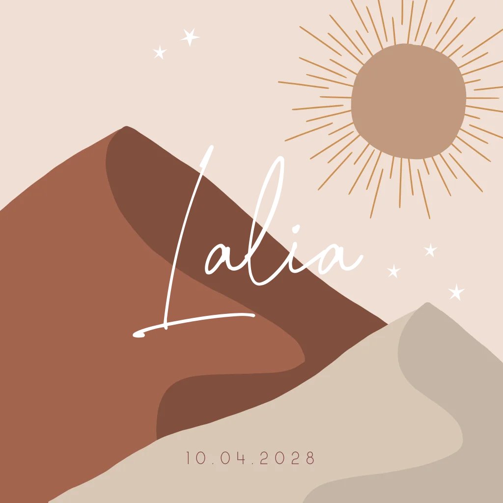 Geboortekaartje meisje landschap berg met zon koperfolie foliedruk en warme kleuren warm. (22399)