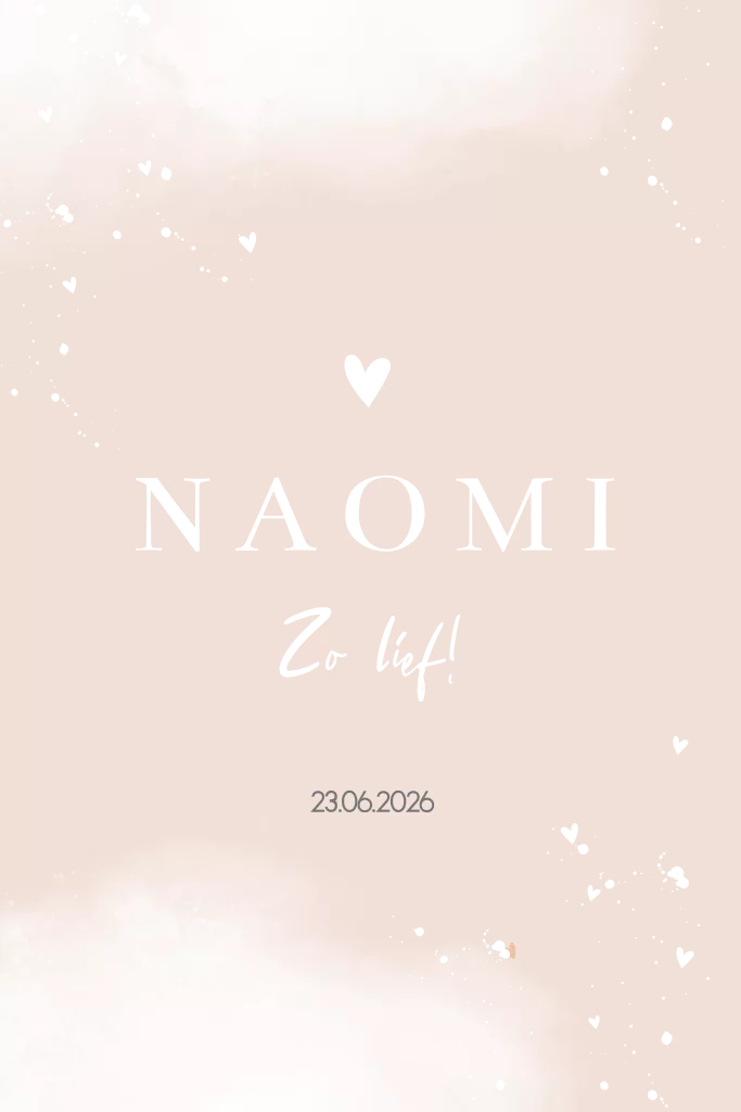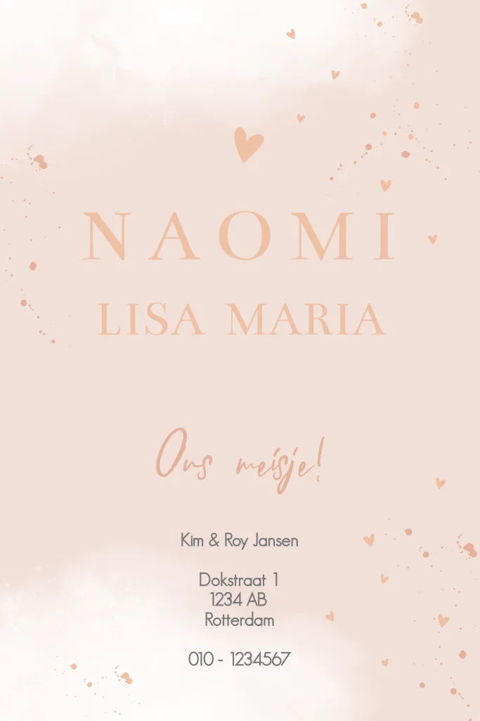 Geboortekaartje meisje watercolour hartjes roze en foliedruk