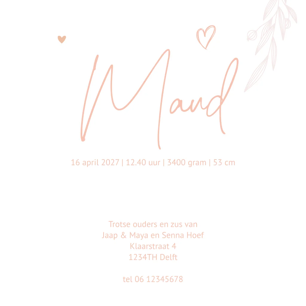 Geboortekaartje Maud.