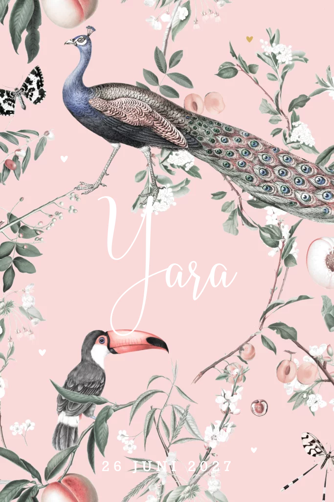 Geboortekaartje meisje met pauw met folie meisje