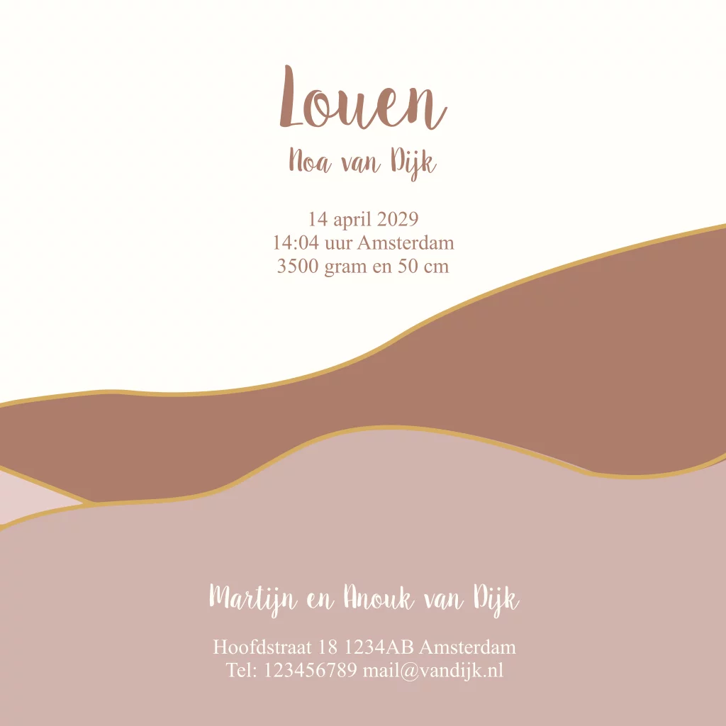 Geboortekaartje sterren maan bergen goudfolie roze