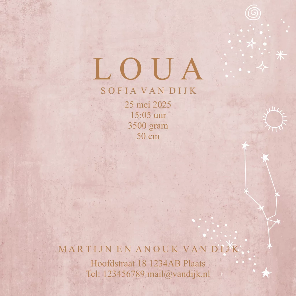 Geboortekaartje sterrenhemel foliedruk roze
